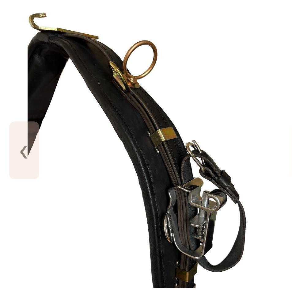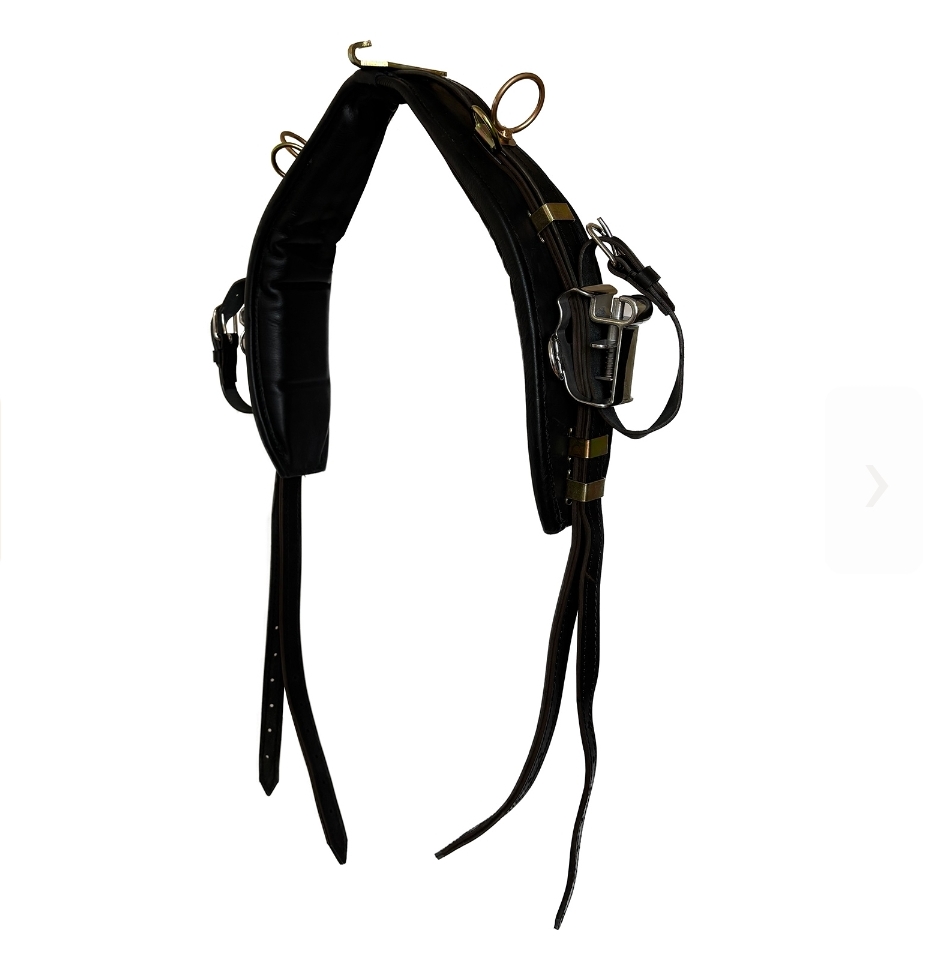 Седелка для беговой упряжи, крепление на специальных замках (хичах). Верхняя часть выполнена из шорно-седельной кожи толщиной 4 мм, мягкая нижняя часть обшита юфтью толщиной 1,5 мм. Ремни - шорно-седельной кожи, шириной 25 мм.