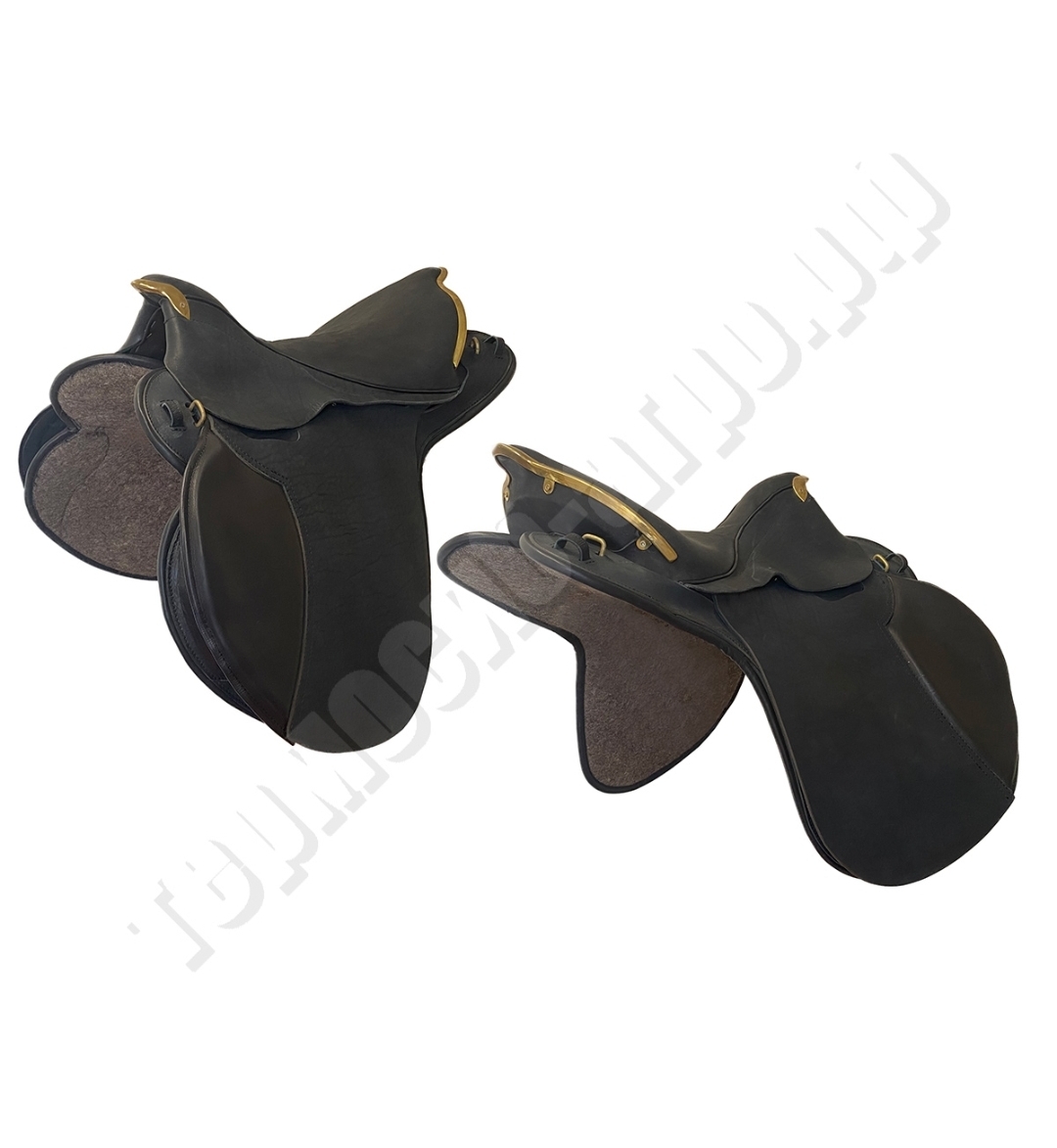 Седло отделано натуральной шорно-седельной кожей и высококачественным войлоком. Оковки и фурнитура выполнены из латуни и нержавеющей стали. Ленчик седла выполнен из специального ударопрочного пластика и усилен металлическими вставками.